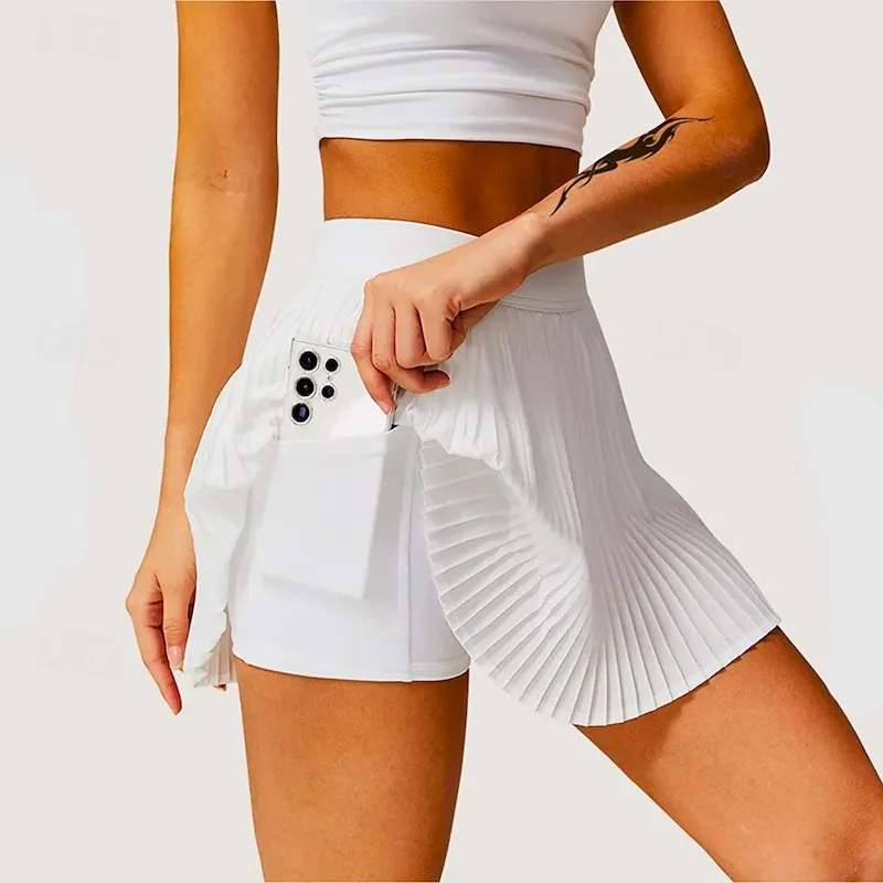 Women’s Inner Shorts Sport Skirts 2 in 1 with Pockets High Waist Bottoms Athleisure Gym Workout Moisture Wicking Breathable Tennis Golf Pickleball Sportswear Activewear Solid Colored Black White Rose