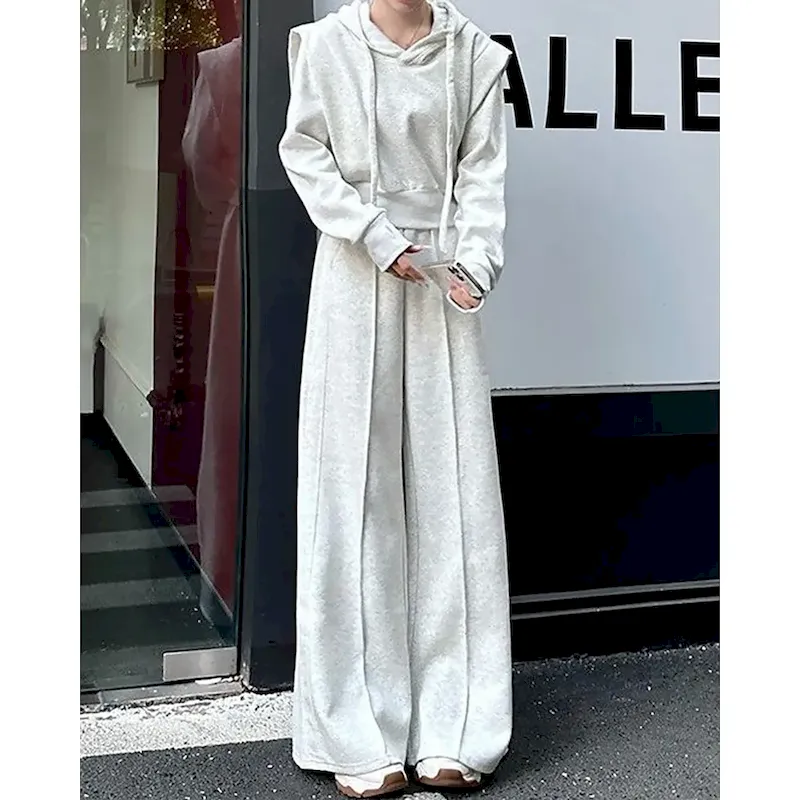 Women’s Tracksuit Wide Leg Pants Zipper Pocket Solid Colored Hoodie Clothing Suit Fall Black Light Grey Gym Workout Sports Windproof Long Sleeve Sport Activewear Micro-elastic Regular Fit