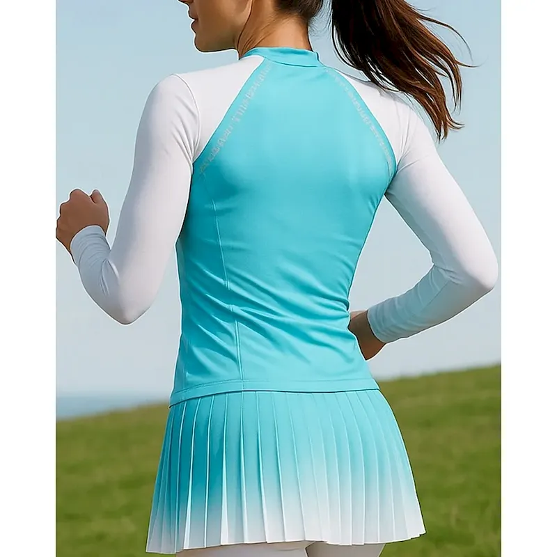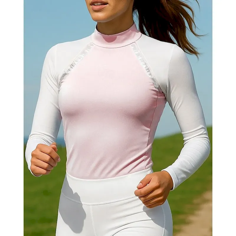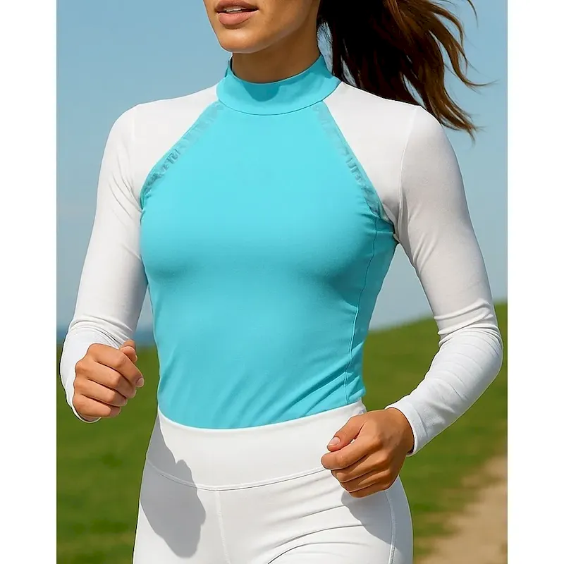 Women’s Running Shirt Tennis Shirt Slim Long Sleeve Tee Tshirt Color Block Quick Dry Lightweight Breathable Tennis Golf Running Sportswear Activewear Black Pink Blue