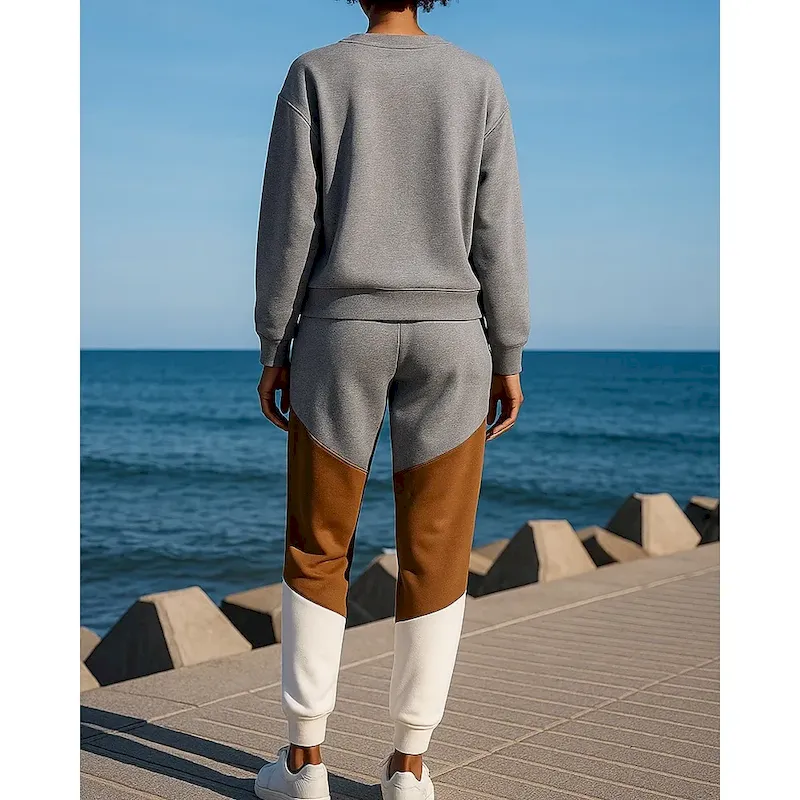 Women’s Tracksuit Sweatpants Pullover Sweatshirt Pocket Color Block Clothing Suit Fall Grey Hiking Workout Athletic Windproof Lightweight Moisture Wicking Long Sleeve Sport Activewear Micro-elastic
